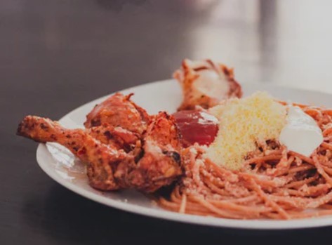 250 gram spaghetti, direbus di dalam air yang dibubuhi 1 sendok makan minyak dan