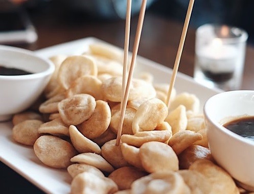 1. Campurkan tepung terigu, tepung beras, baking powder, dan ketumbar bubuk. Aduk rata.
