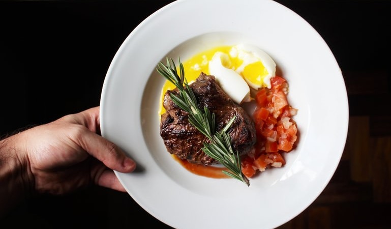 7. Sajikan steak bersama kentang goreng, sayuran, dan mentega bawang.