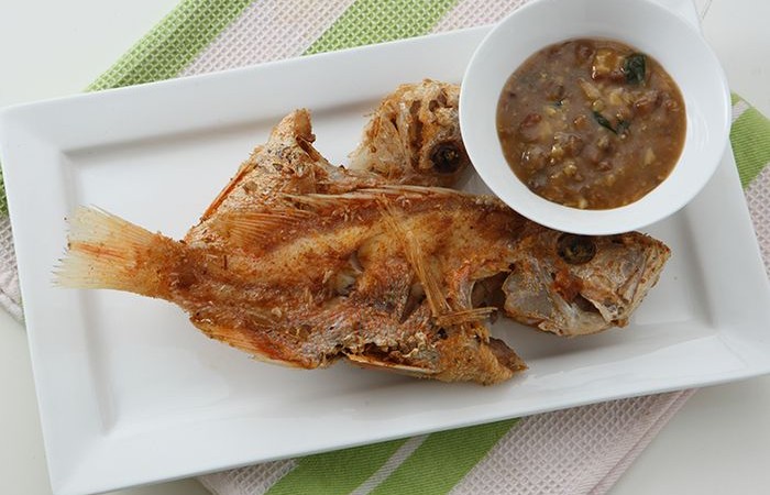 Cara Membuat Ikan Kakap Goreng Siram Tauco Daun Koja: