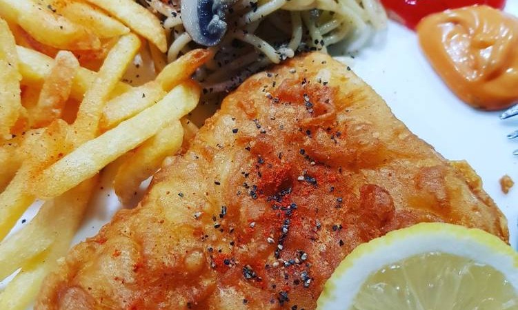 5. Taruh ikan goreng di atas piring saji, hidangkan selagi panas dengan pelengkap kentang goreng dan saus tartar.