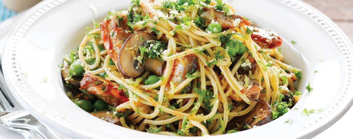 4. Sajikan spaghetti dengan ikan sardine.