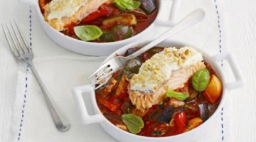 Bahan-bahan: 150 gram daging ikan salmon fillet 2 bua tomat, potong 1/2 buah pa...