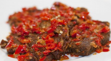 Dendeng balado adalah masakan khas Sumatera Barat, diiris tipis dan digoreng kering kemudian dica...