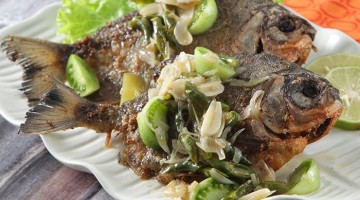 Bahan: - 3 ekor ikan bawal. - 6 siung bawang putih, cincang - 4 siung bawang merah, cincang - 1/...