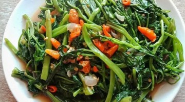 Bahan: 250 gram kangkung, siangi 100 gram taoge, siangi 3 buah cabai merah, iri...